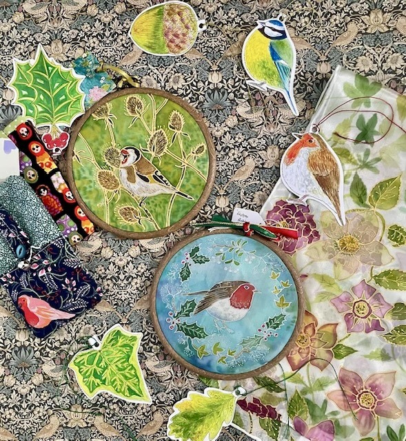 First you will learn how to plan your own design, with lots of tips and tricks to guide you through it. You will also learn how to use gutta, which will create an outline, so that the paint doesn’t spread out. Once that is dry, you can then enjoy painting your Robin and foliage to create your own unique silk painting!